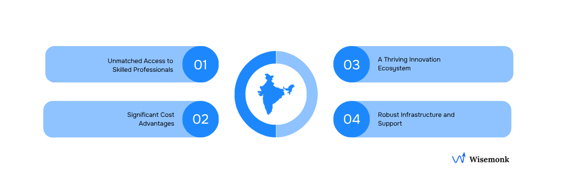 - Key benefits are access to highly skilled professionals, cost efficiency, world-class digital infrastructure, strong government support, and a thriving innovation ecosystem.
