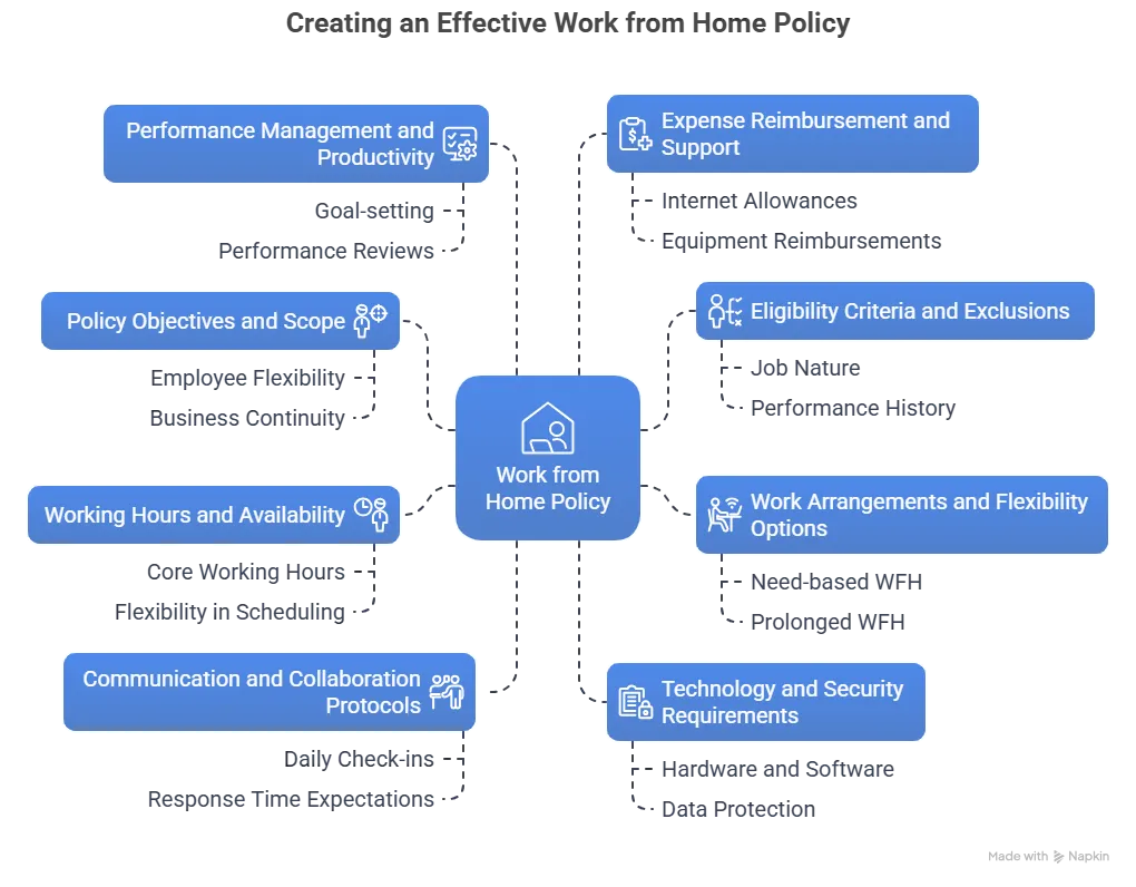 Creating a comprehensive WFH policy requires systematic planning and attention to multiple critical components. Based on our experience with diverse organizations and managing payroll processing services in India, here's a structured approach to developing an effective policy.