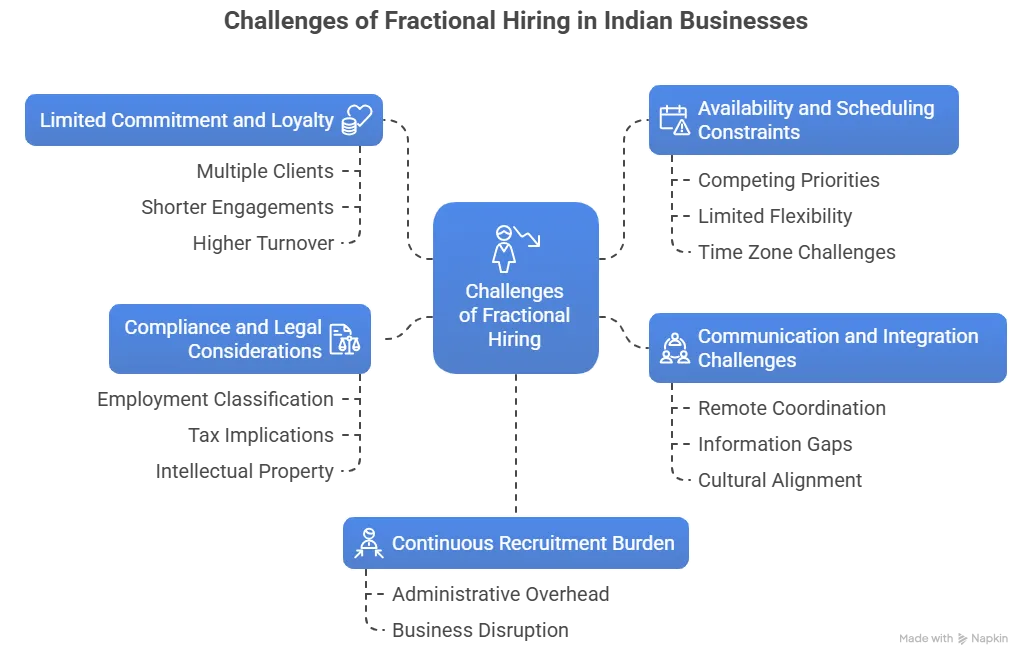 While fractional hiring offers significant benefits, our experience reveals several challenges that Indian businesses must carefully consider.
