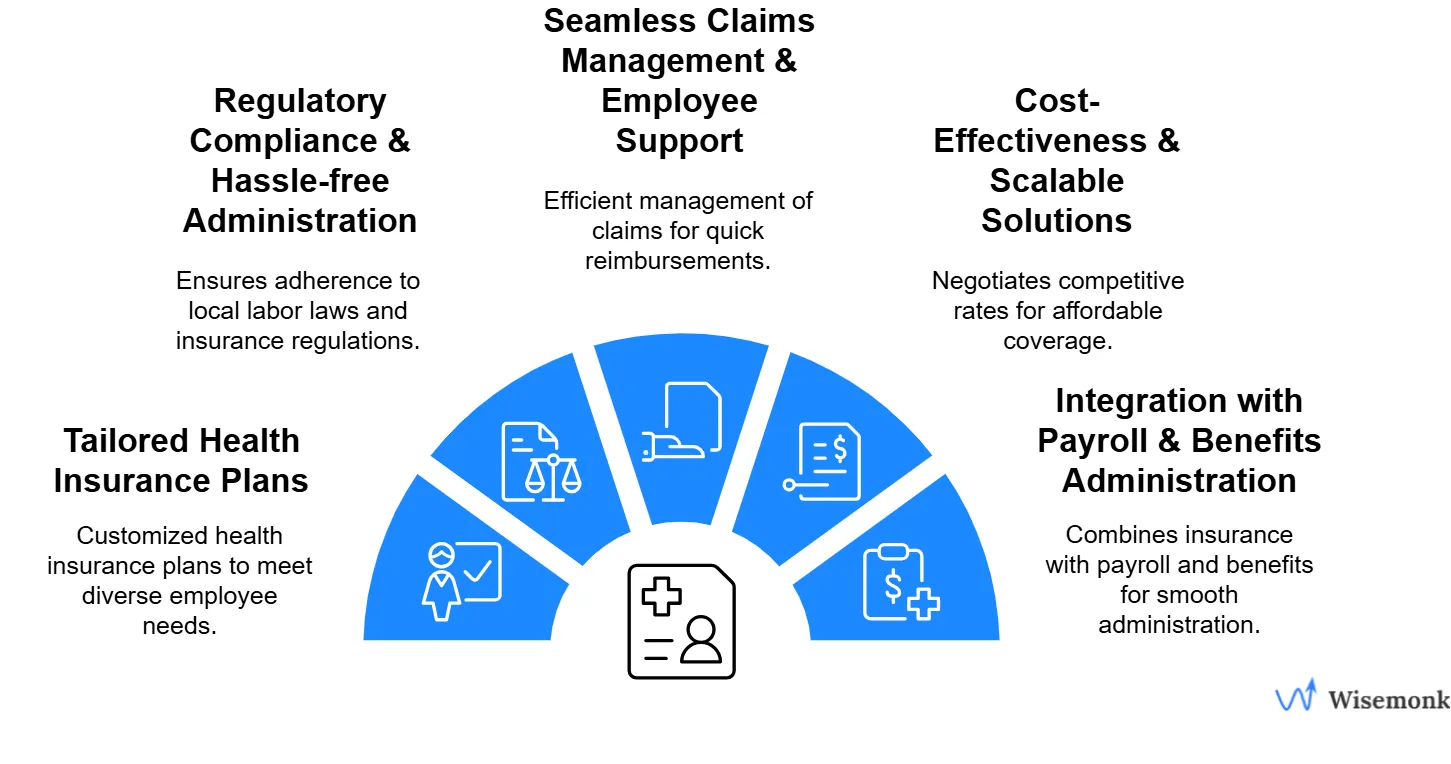 Managing health insurance for employees in India can be complex, especially for global businesses unfamiliar with local regulations and market dynamics. Wisemonk, as an Employer of Record (EOR) in India, provides end-to-end support to ensure seamless, compliant, and cost-effective health insurance solutions. Here’s how we help: