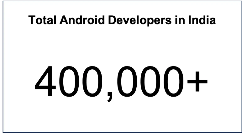 The hiring landscape for Android developers in India is highly competitive and dynamic. The rapid expansion of the e-commerce sector, the digital transformation of businesses, and the rising demand for mobile-based applications and services have all contributed to an increase in the demand for Android developers. While an accurate estimation of Android developers is a challenge, it is estimated that there are over 400K Android developers in India across product and service companies.
