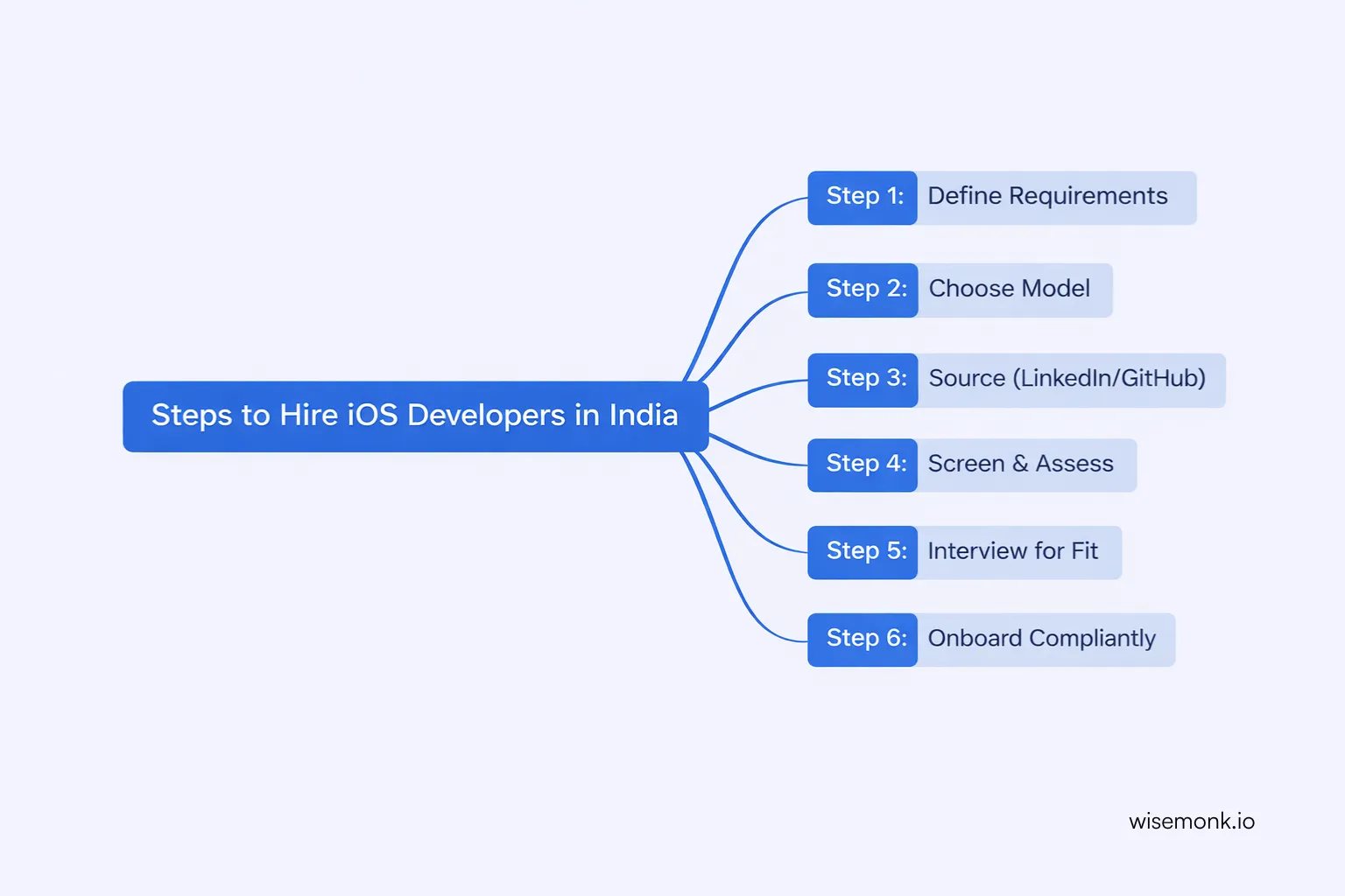 Based on what we've seen working with hundreds of companies building their iOS development teams in India, here's a clear, proven process: