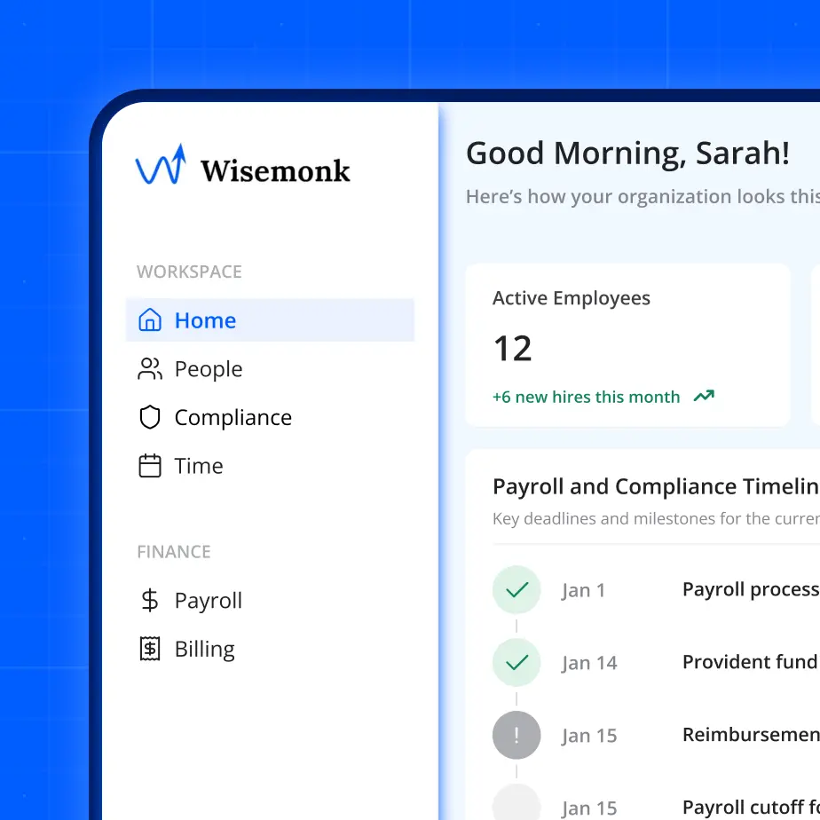 Wisemonk is built in India, with India-first payroll logic and deep labor law coverage, instead of abstracting India into a generic global setup.