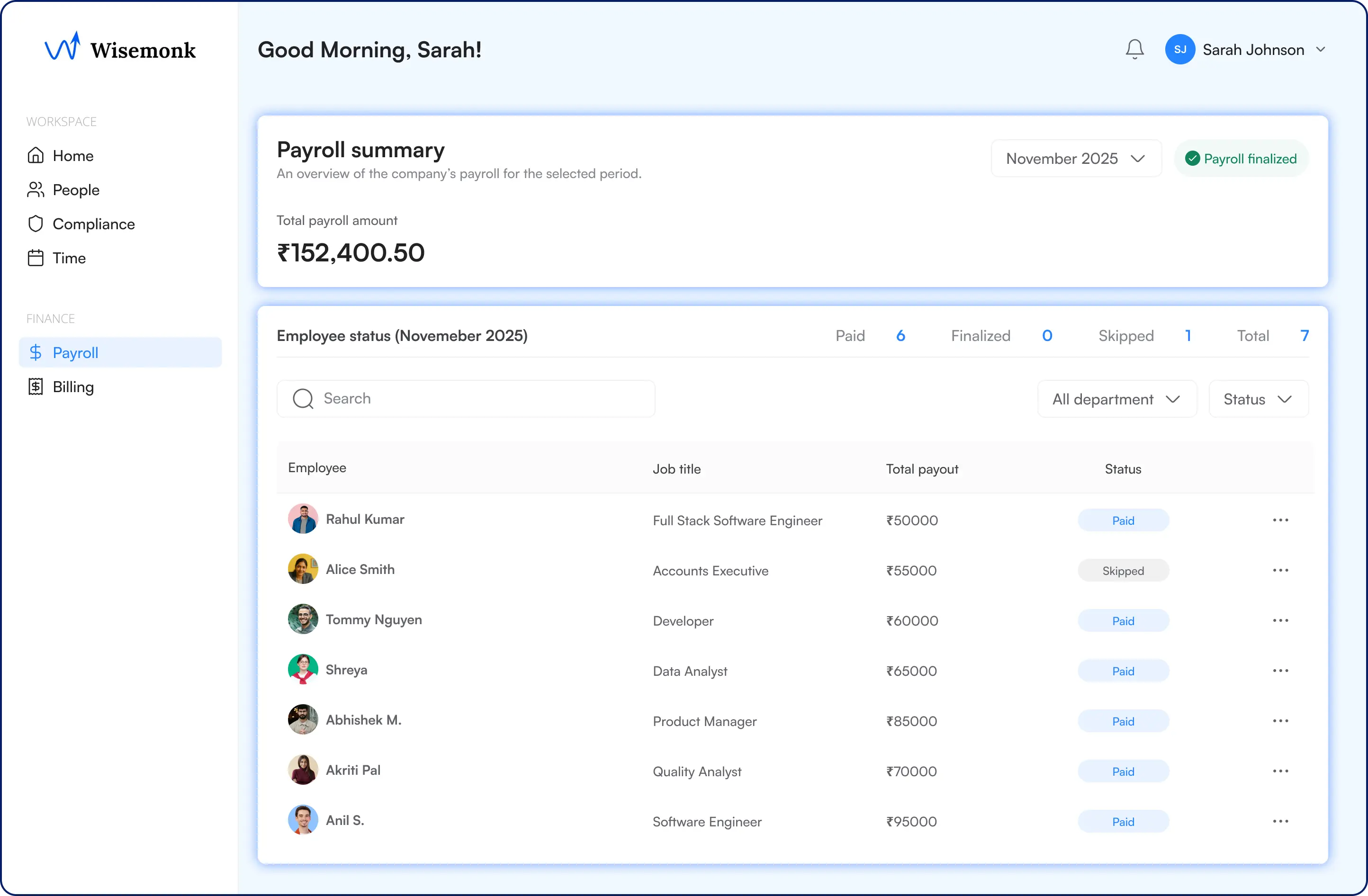 Wisemonk payroll is built specifically for India: