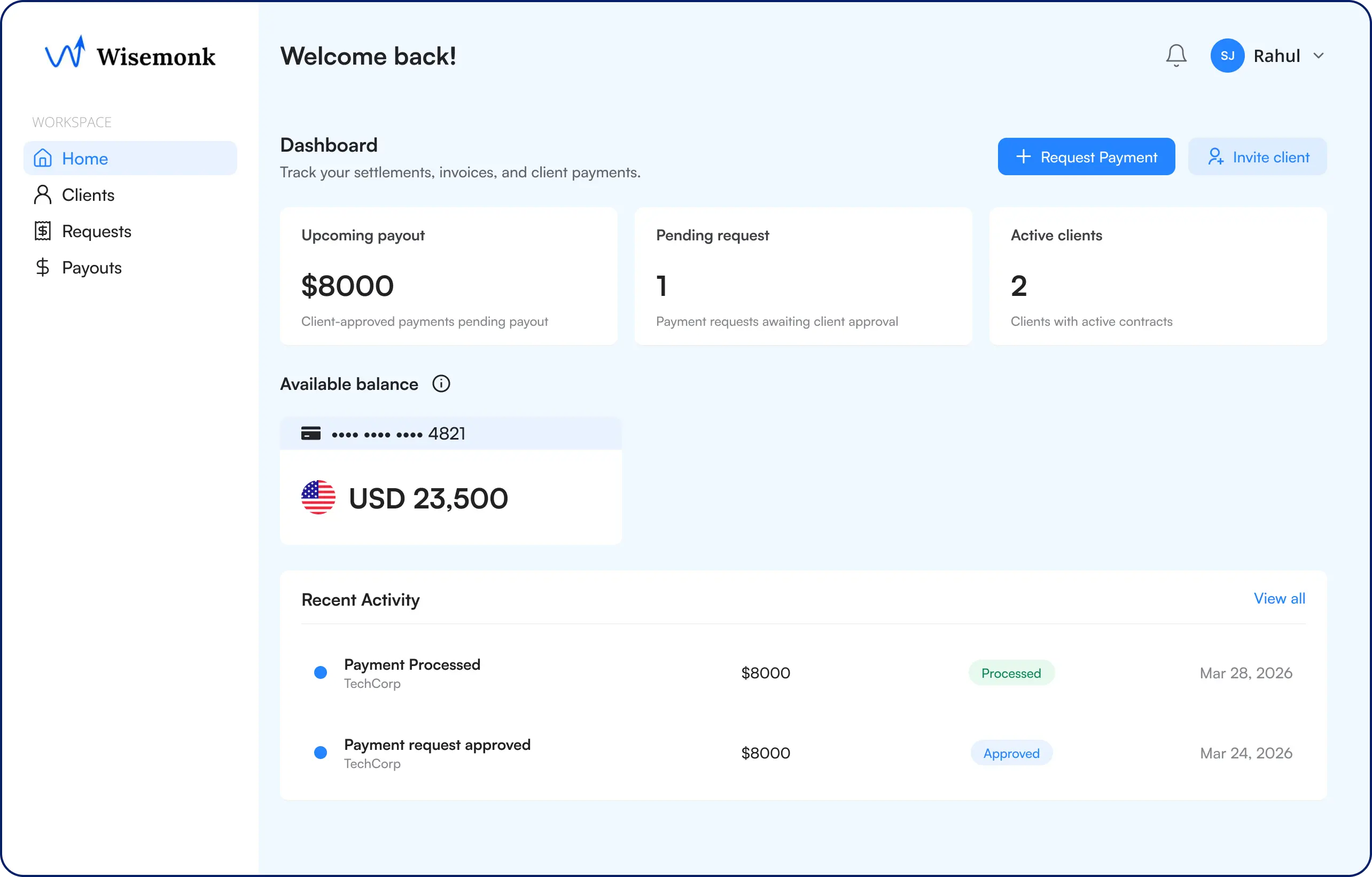 Each approved vendor gets local USD or CAD account details. You pay through local methods. No need to run every payment like a traditional international wire.